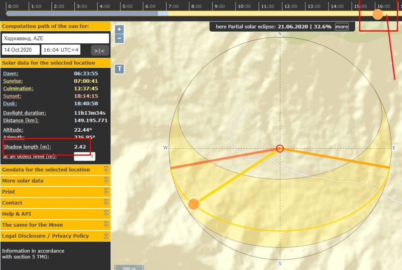Расчёты на сайте говорят, что съёмка велась не в 15:11, а примерно в 16:10. Так как длина тени равна около 1,76 метра.