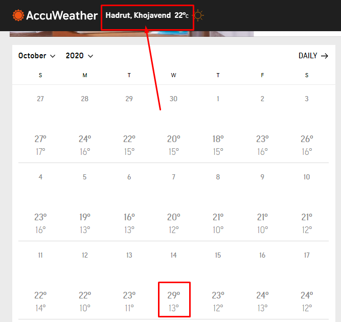 Кроме того, примечательно другое. Если съёмка действительно велась 14 октября 2020 года, есть один нюанс. Зафиксировано, что в то время в Гадруте выдался самый жаркий день в октябре. Чтобы в этом убедиться, достаточно пройти по ссылке.