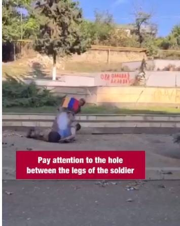Возникает вопрос. Если люди на видео – действительно азербайджанские солдаты, зачем им было нужно с риском для жизни идти ещё 4-5 километров? Отягощёнными двумя пленниками и в форме без знаков различия? Чтобы в итоге расстрелять их у какого-то безымянного парка. Так почему же не на месте — зачем рисковать собственной жизнью в городе, где обязательно найдутся мины или вполне может прилететь от артиллерии? Где в застройке может скрываться недобитый противник?