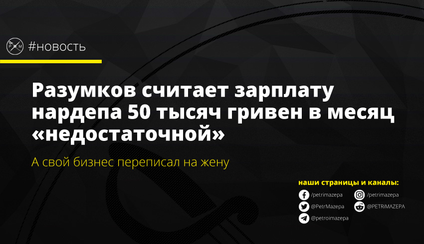 Председатель партии «Слуга народа» и один из возможных кандидатов на пост спикера нового парламента Дмитрий Разумков рассказал, что переписал свой бизнес на жену, но сенсации здесь «не будет». Также он считает, что 50 тысяч гривен в месяц, которые народный депутат может получать на своем посту (зарплата 37 тысяч гривен + доплаты), - недостаточное обеспечение.