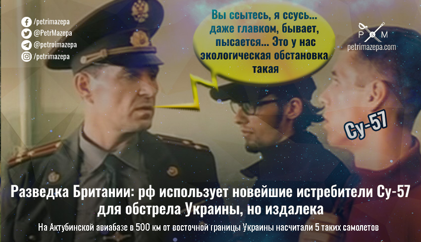 Министерство обороны Великобритании, со ссылкой на данные разведки и спутниковые снимки, предполагает использование россией новейших истребителей Су-57 FELON для нанесения ударов по территории Украины. Но добавляет, что эти самолеты не рискуют подходить близко к границам с Украиной.
