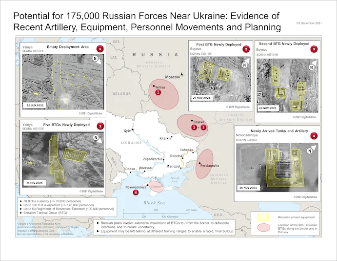 - А 19 ноября разведка Украины сообщила, что накопление сил РФ у границы Украины будет продолжаться и пик численности войск будет достигнут в конце января.