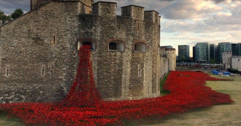 Поражает обилие памятников жертвам войны, мемориалов, перформансов и культурных проектов на эту тематику. Вот, например, инсталляция во рву Тауэра, где каждый мак символизирует павшего британского бойца.