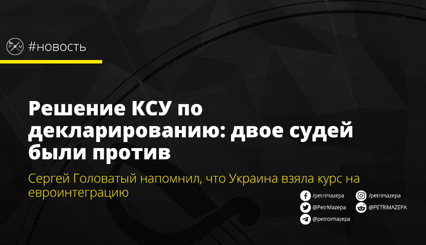 Решение Конституционного суда об отмене ряда антикоррупционных норм и декларировании не поддержали судьи Сергей Головатый и Василий Лемак.