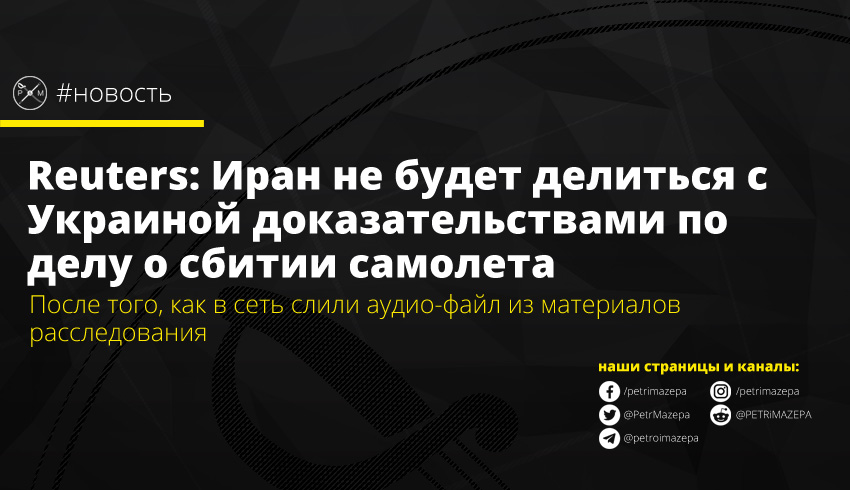 Директор по расследованию несчастных случаев в Иранской организации гражданской авиации заявил, что аудио-файл был частью доказательств, предоставленных иранской стороной украинским экспертам в рамках расследования аварии, передает Reuters. Речь идет о разговоре пилота другого самолета с диспетчером во время которого он рассказал, что видел ракету, сбившую самолет украинской компании МАУ в Иране.