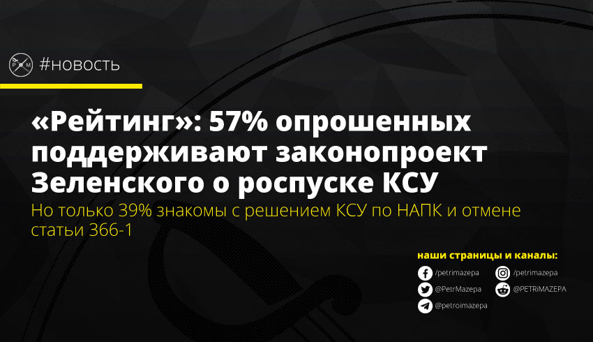 «Рейтинг»: 57% опрошенных поддерживают законопроект Зеленского о роспуске КСУ