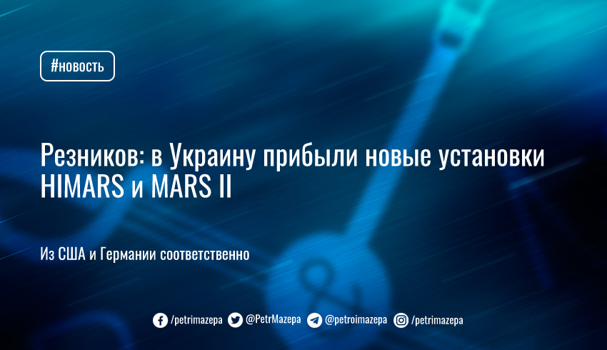 Украина получила от США еще четыре РСЗО HIMARS. А Германия поставила нам РСЗО MARS II. Об этом сообщил министр обороны Алексей Резников.