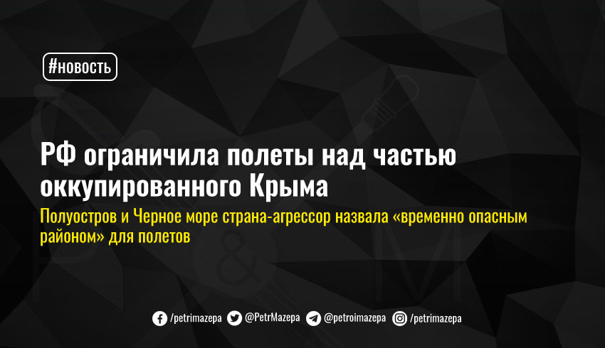 Россия с сегодняшнего дня заявила об ограничении полетов над частью оккупированного Крыма и над частью Черного моря. Район назван «временно опасным».