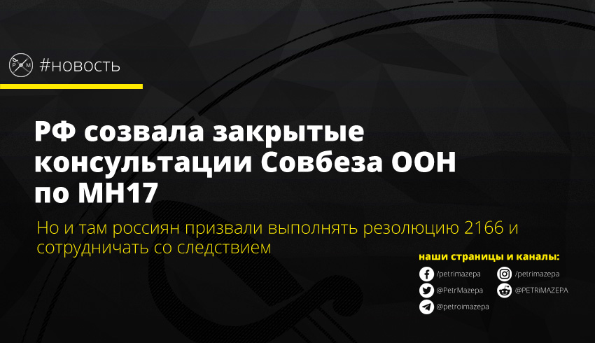 Вчера в Нью-Йорке по инициативе Российской Федерации Совет Безопасности ООН провел закрытые консультации по началу судебных заседаний по делу о привлечении к ответственности первых четырех обвиняемых в сбивании самолета Малайзийских авиалиний рейса МН17.