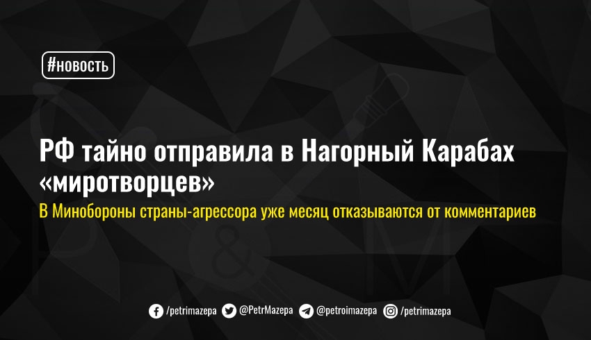 Россия тайно перебросила в Нагорный Карабах десятки «миротворцев». Отправку за границу контрактников из Екатеринбурга министерство обороны страны-агрессора уже месяц отказывается комментировать по запросу СМИ.