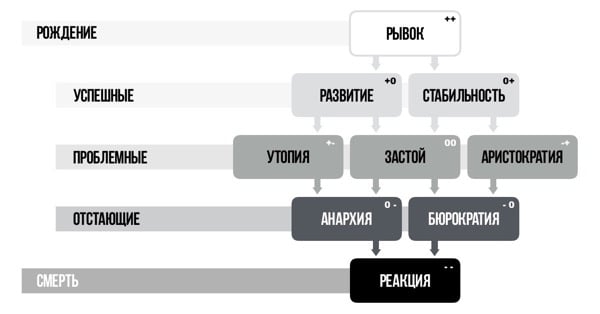 Чтобы разделить жизненный цикл государства на отдельные этапы и понять, где мы и как близко находимся к финалу, нужно ввести оценки (пусть и субъективные) способности государства к изменениям и качества процессов управления.
