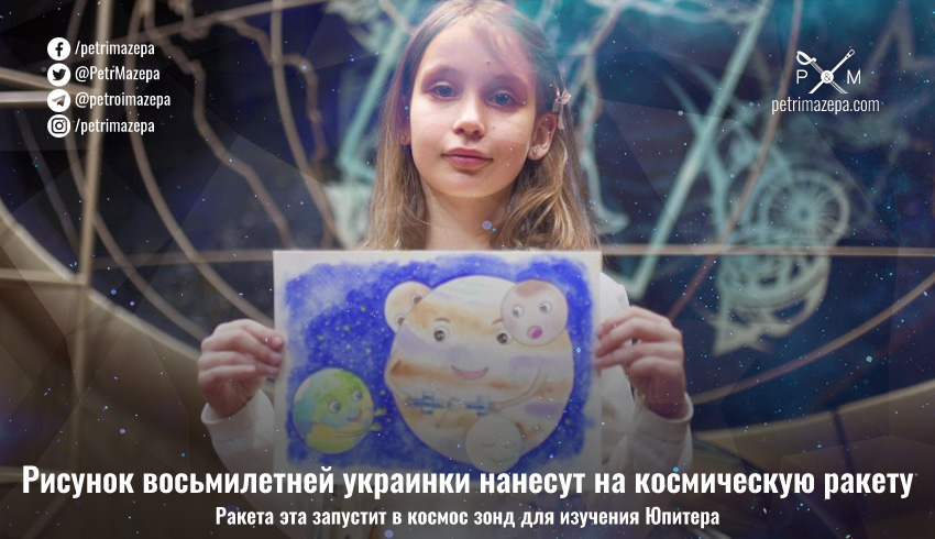 Восьмилетняя житомирянка Ярина Закалюжная победила в международном конкурсе рисунков Juice Up Your Rocket! Art competition, организованном Европейским космическим агентством (European Space Agency, ESA).