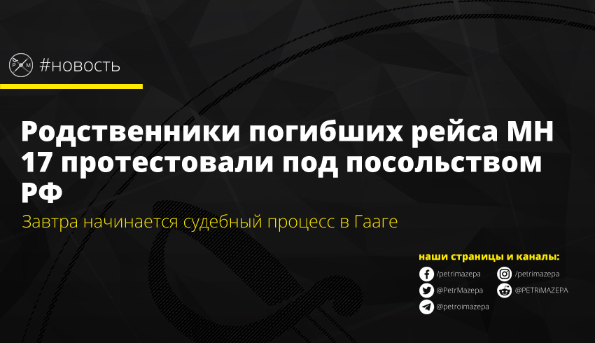 Родственники погибших во время сбития самолета рейса МН17 зенитно-ракетным комплексом «Бук» устроили молчаливый протест в Гааге. Акция проходит накануне начала судебного процесса по делу о катастрофе самолета.