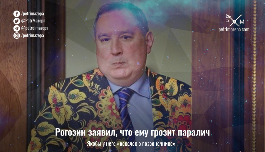 Скандальный экс-председатель «Роскосмоса» и ныне глава того, что в россии называют «научно-техническим центром «Царские волки» Рогозин заявил, что ему грозит паралич из-за осколка в позвоночнике.