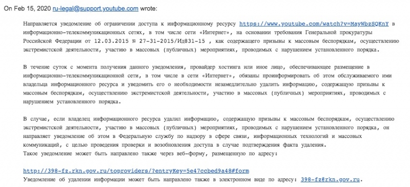 А произошло, дорогие, самое простое. YouTube в очередной раз принял сторону страны-агрессора, молча скушав её претензии и выставив нам предупреждение об удалении видео. Всего четыре года понадобилось российским эрудитам, чтобы найти видео, опубликованное ещё во времена главредства Швеца. Пока его не снесли окончательно, добавим вставку в этот текст. Кстати, по ссылке потом будет удобно отслеживать, жива ли запись.