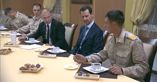 Предвыборная президентская кампания Владимира Путина идёт полным ходом. На российском TV появляется всё больше постановочных репортажей о встречах президента: то с коллективами заводов и предприятий, то с благодарными гражданами. А 11 декабря Путин с официальным визитом посетил Сирию. Под фокус камер государственных телеканалов он принял парад на авиабазе Хмеймим и поблагодарил военнослужащих за службу. СМИ в очередной раз написали о его заявлениях про вывод российских войск из Сирии, но нужно внимательно читать между строк основной посыл этих сообщений.