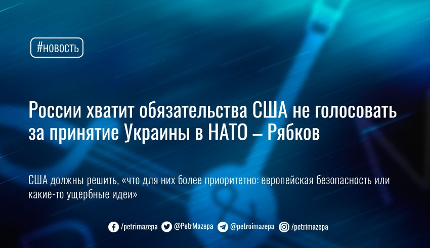 России хватит обязательства США не голосовать за принятие Украины в НАТО – Рябков