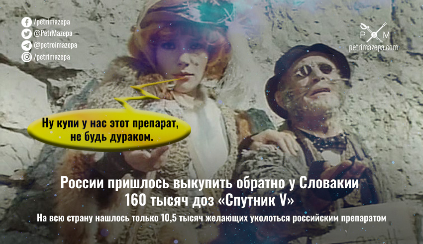 - 12 июня в Словакии заявили, что больше не будут закупать «Спутник V» ибо на него нет спроса.