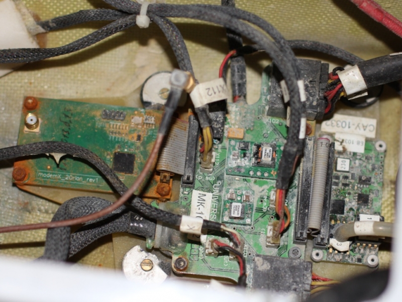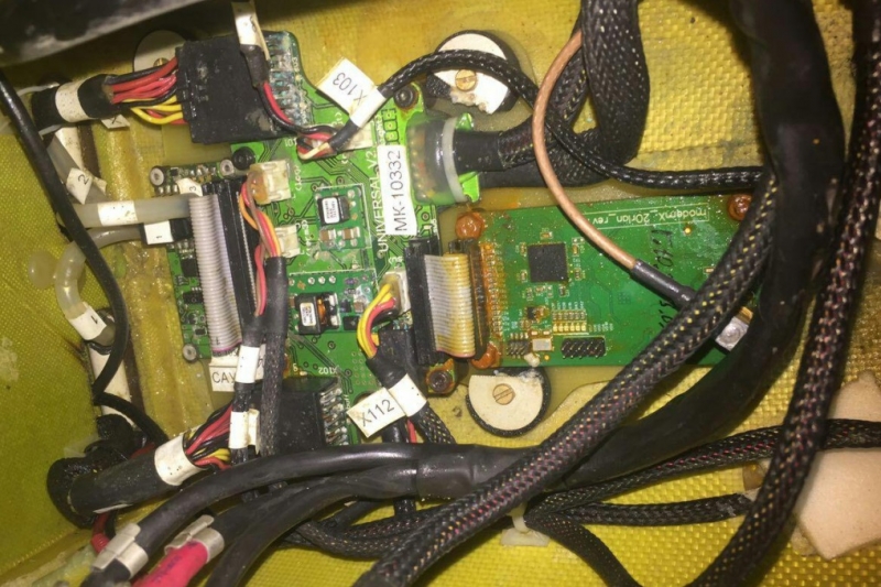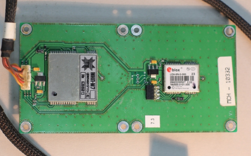 GPS-трекер расположен +100/150 мм от технологического отсека соединителя крыла. Тип питания: стационарное и от собственного аккумулятора. SIM-карта в модуле передачи данных отсутствовала, возможно, трекер прошит под определённые сети. Микросхемы с маркировкой HC4060 2H7A201 и STC 12LE5A32S2 35i производства КНР.