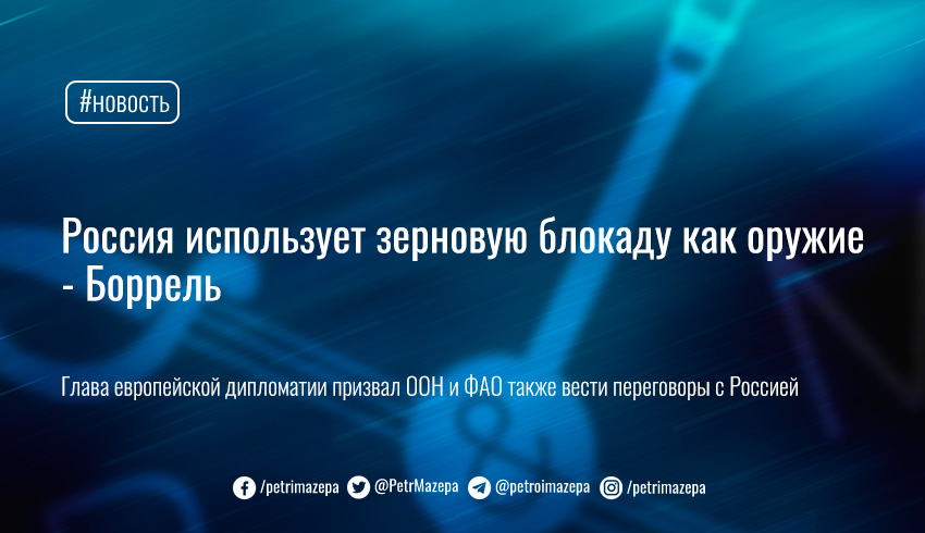 Россия использует блокаду как оружие, подчеркнул Боррель. Он предупредил, что если блокаду не прорвать, в мире начнется голод.