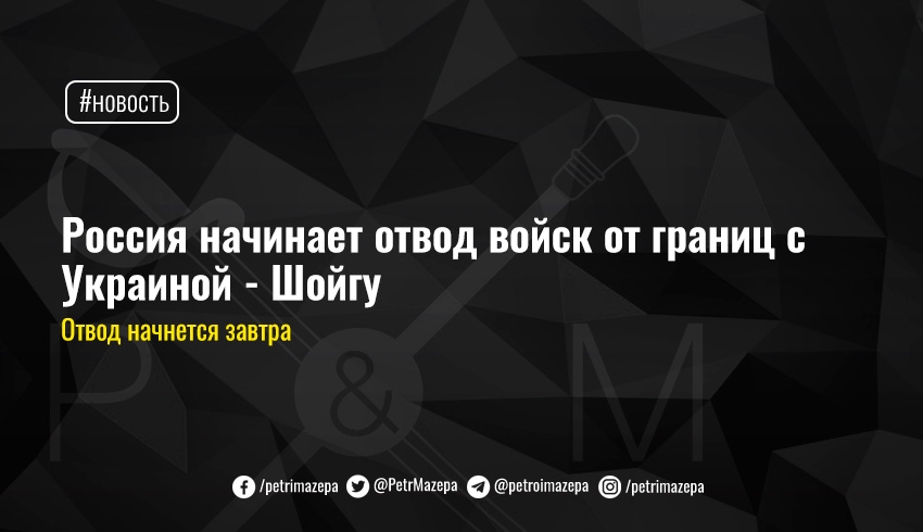 Россия начинает отвод войск от границ с Украиной - Шойгу