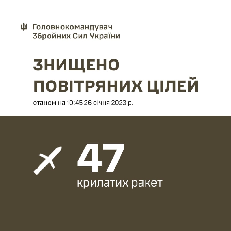 Из них — 47 крылатых ракет были сбиты ПВО ВСУ и еще 3 из 4 авиационных ракет Х-59 не достигли своих целей.