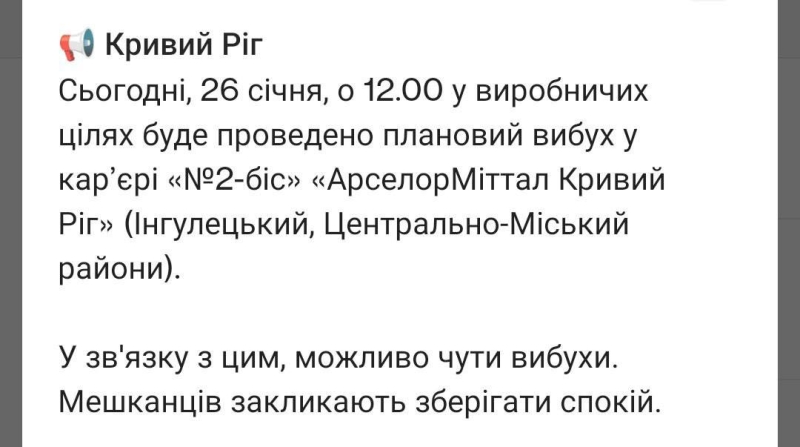 В 12:00 в Кривом Роге будут плановые взрывы на карьере, имейте в виду, когда увидите очередные панические сообщения от соцсетей.