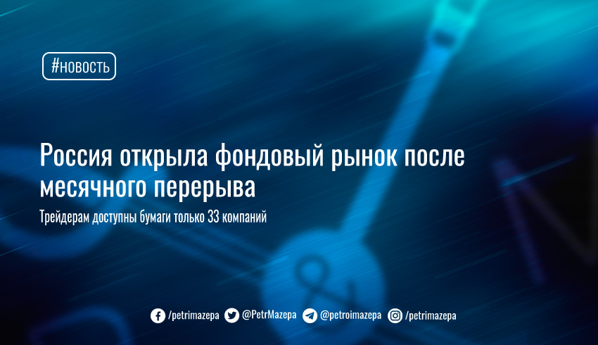 На Московской бирже в четверг возобновились торги акциями после месячного перерыва. Центральный банк РФ с 28 февраля не разрешал открывать фондовый рынок из-за угрозы обвала. Возобновление торгов пока частичное – трейдерам доступны бумаги только 33 компаний, а открытие коротких позиций (то есть игра на понижение) запрещено. В США считают, что это «не реальный рынок и не устойчивая модель, что лишь подчеркивает изоляцию России от глобальной финансовой системы».