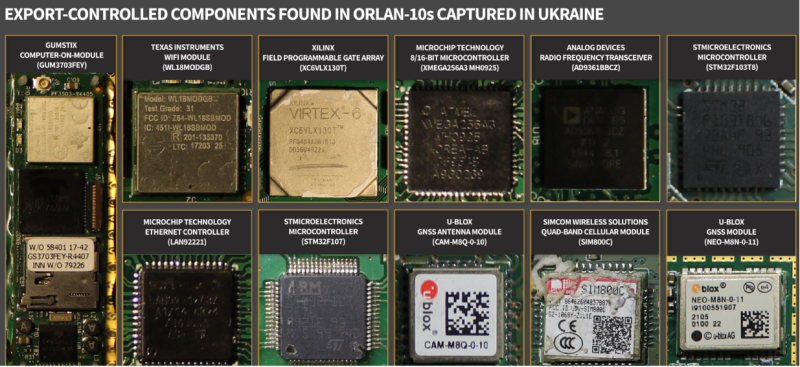 Как отмечают авторы, в БПЛА «Орлан-10», используемом россией против Украины с 2014 года, из «российского» только корпус. Все остальное закупается за границей. И уже несколько лет — в обход санкций. Так, «Орлан» получает иностранную микроэлектронику.
