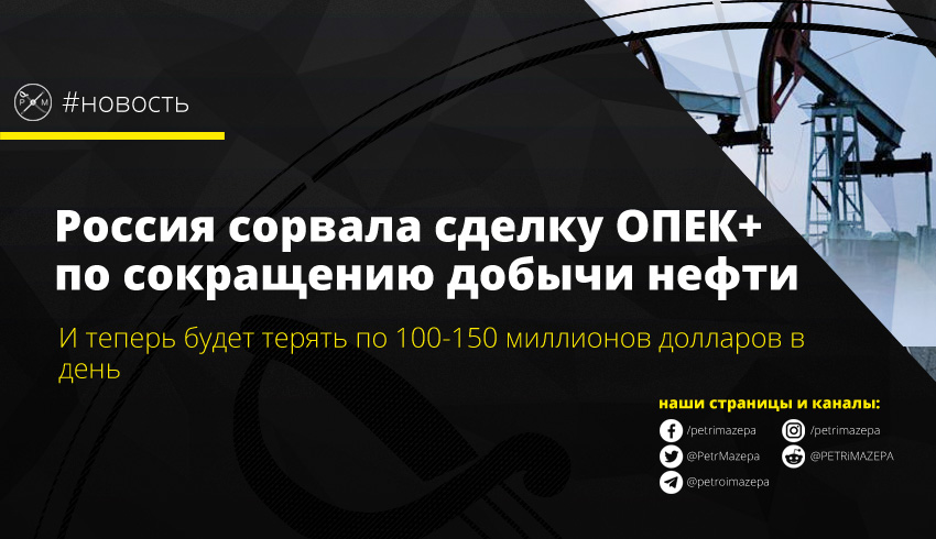 Россия сорвала сделку ОПЕК+ по сокращению добычи нефти