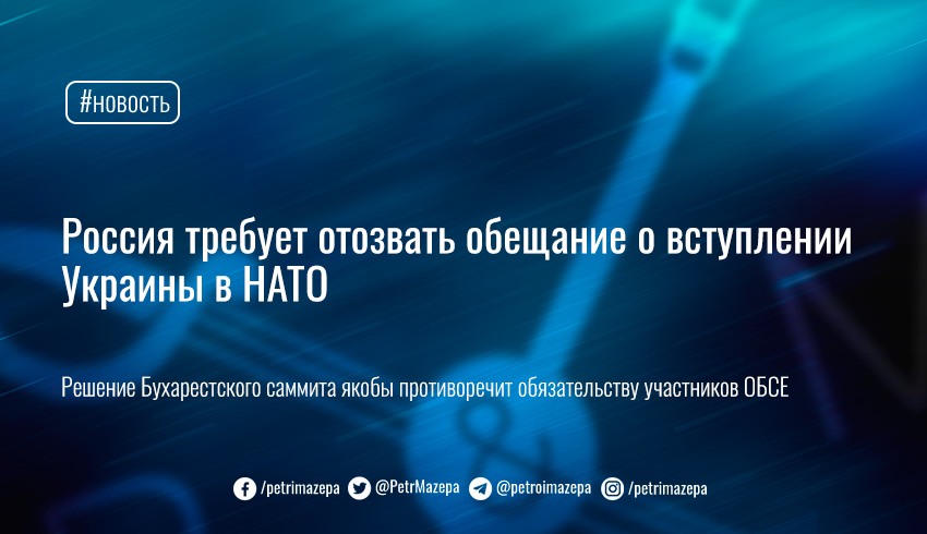 Россия требует официального отзыва обещания НАТО о вступлении Украины в состав Альянса во время саммита в Бухаресте в 2008 году.