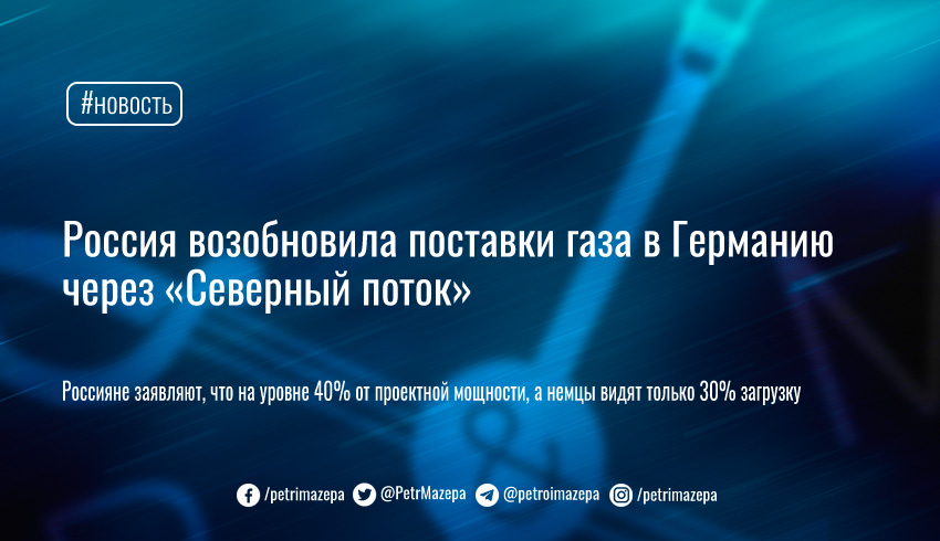 Россия возобновила поставки газа в Германию через «Северный поток»