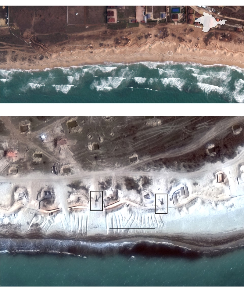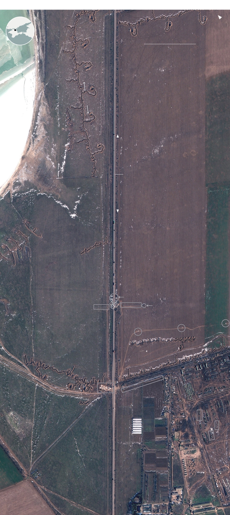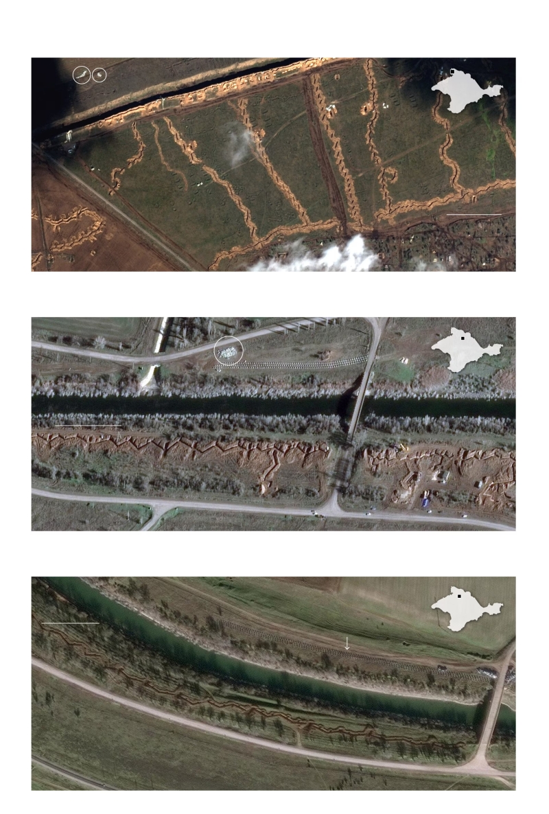 Спутниковые снимки показывают, что россия строит укрепления на западном берегу Крыма, там устанавливают артиллерию — хотя этот регион еще далек от зоны активных боевых действий.