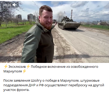 Об этом заявил российский пропагандист Семен Пегов. На видео показал «выход батальона» боевиков ОРДЛО из Мариуполя, который, по версии внутри рф, уже захвачен, хотя там все еще находятся защитники Украины.