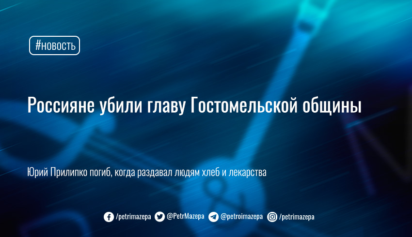 Глава Гостомельской общины Юрий Прилипко погиб, когда раздавал людям хлеб и лекарства.