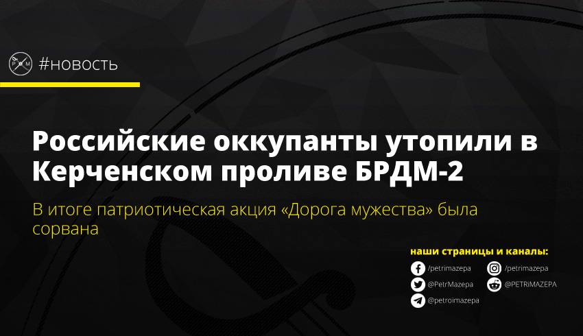 Сегодня утром три бронемашины стартовали от станицы Тамань через Керченский пролив в сторону аннексированного Крыма. В этот раз проведение патриотической акции «Керченский десант "Дорога мужества"» не прошло без потерь – утонула одна БРДМ-2.