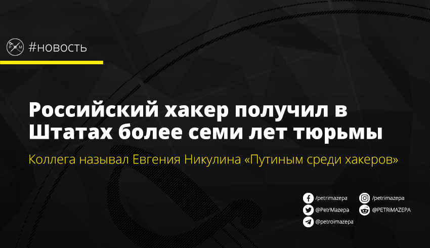 Федеральный суд США приговорил российского хакера Евгения Никулина к семи годам и четырем месяцам тюрьмы - за кражу личных данных и их продажу, за установку вредоносных программ на защищенных компьютерах, за сговор и компьютерный взлом.