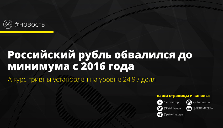 Сегодня российский рубль упал до уровня февраля-марта 2016 года относительно доллара и евро. При этом гривна относительно стабильна, хотя и подешевела относительно показателей 6 марта.
