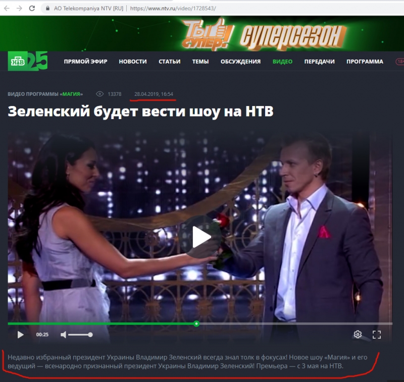 Телекомпания НТВ в очередной раз продемонстрировала уровень российских медиа и решила срубить просмотров на теме интереса к украинским выборам (интереса к своим то давно нет). Поэтому с 3 мая на телеканале под видом нового шоу будут крутить отснятую в 2011 году «Магию» с Владимиром Зеленским.