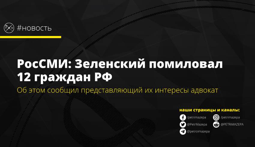 Президент Украины Владимир Зеленский подписал указы о помиловании 12 граждан РФ. Об этом пишут российские СМИ со ссылкой на адвоката Валентина Рыбина, который представляет интересы заключенных россиян.