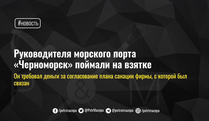Чиновник действовал при посредничестве представителя другого кредитора частной компании, который получил неправомерную выгоду для дальнейшей передачи должностному ГП «Морской торговый порт «Черноморск».