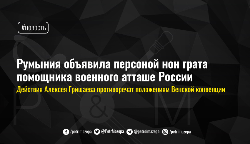Министерство иностранных дел Румынии на фоне высылки российских дипломатов из европейских стран объявило персоной нон грата помощника военного атташе России Алексея Гришаева.