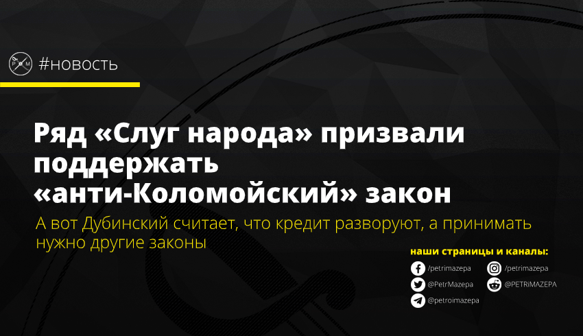 Более двадцати депутатов «Слуги народа» через свои соцсети призвали поддержать так называемый «анти-Коломойский» законопроект №3260, касаемо невозвращения выведенных с рынка банков экс-владельцам.