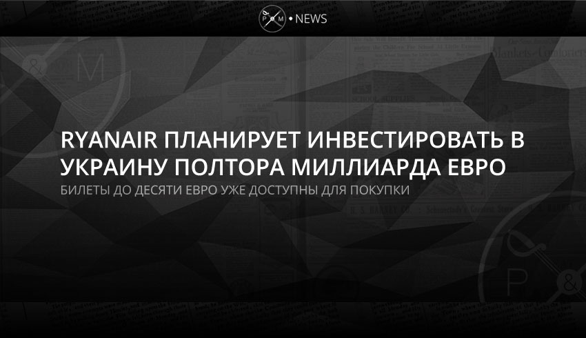 Ирландский лоукостер Ryanair планирует за несколько лет инвестировать в Украину около 1,5 млрд евро. Также перевозчик расширит географию полетов, а стоимость билетов на его рейсы уже составляет от 9.99 евро.