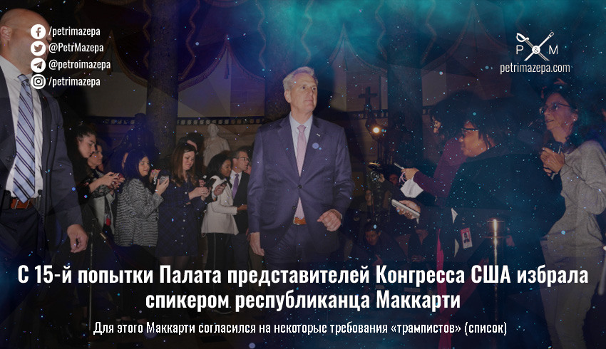 Утром 7 января Палата представителей Конгресса США смогла принять присягу. Главой Палаты представителей стал лидер Республиканской партии США Кевин Маккарти. Но это ему удалось только с 15-й попытки и обычным большинством.