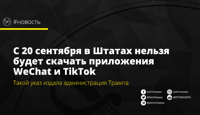 С 20 сентября в Штатах нельзя будет скачать приложения WeChat и TikTok