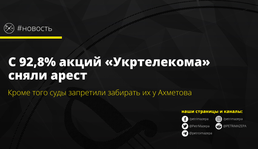 Суды сняли арест с 92,8% акций «Укртелекома», принадлежащих ООО «ЕСУ» Рината Ахметова и запретили забирать их у олигарха.