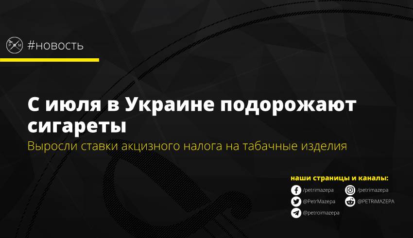 В Украине с 1 июля 2019 года выросли на 9% ставки акцизного налога на табачные изделия. Это автоматически повлечет за собой подорожание сигарет для потребителей.