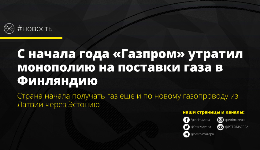 С начала года «Газпром» утратил монополию на поставки газа в Финляндию