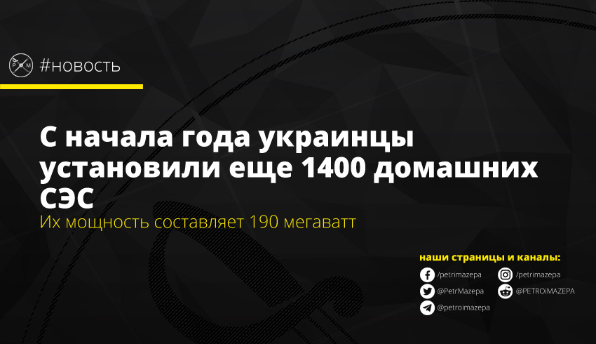 За первый квартал 2019 года в Украине в 2,5 раза увеличилось количество семей, установивших домашние солнечные электростанции (СЭС) по сравнению с аналогичным периодом прошлого года. В текущем году домашние СЭС установили почти 1400 семей.
